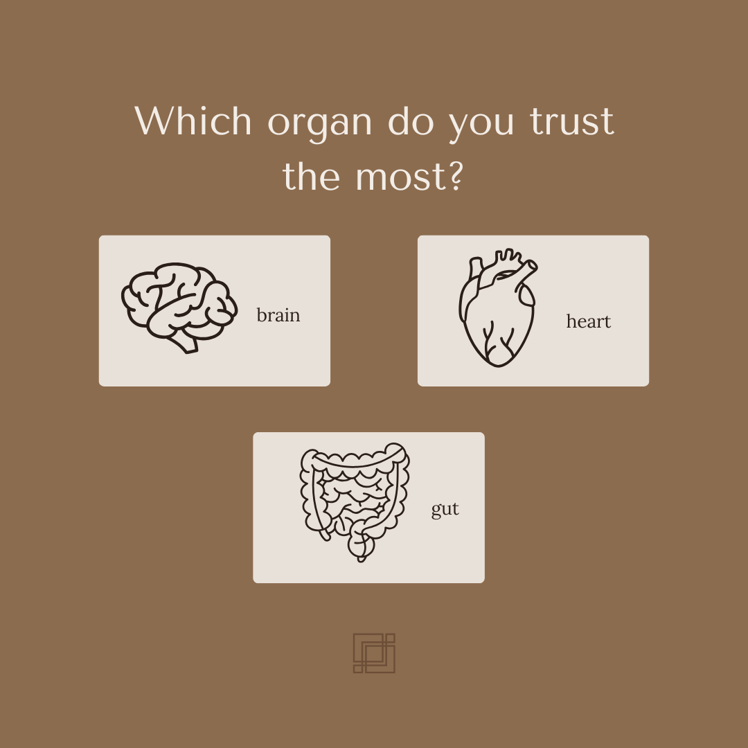 My answer across the board used to be brain. My thought process was: my brain processes what my heart feels. My brain tells me what my gut says. My brain translates intuition. It’s the one that delivers everything so I gotta trust that, right?